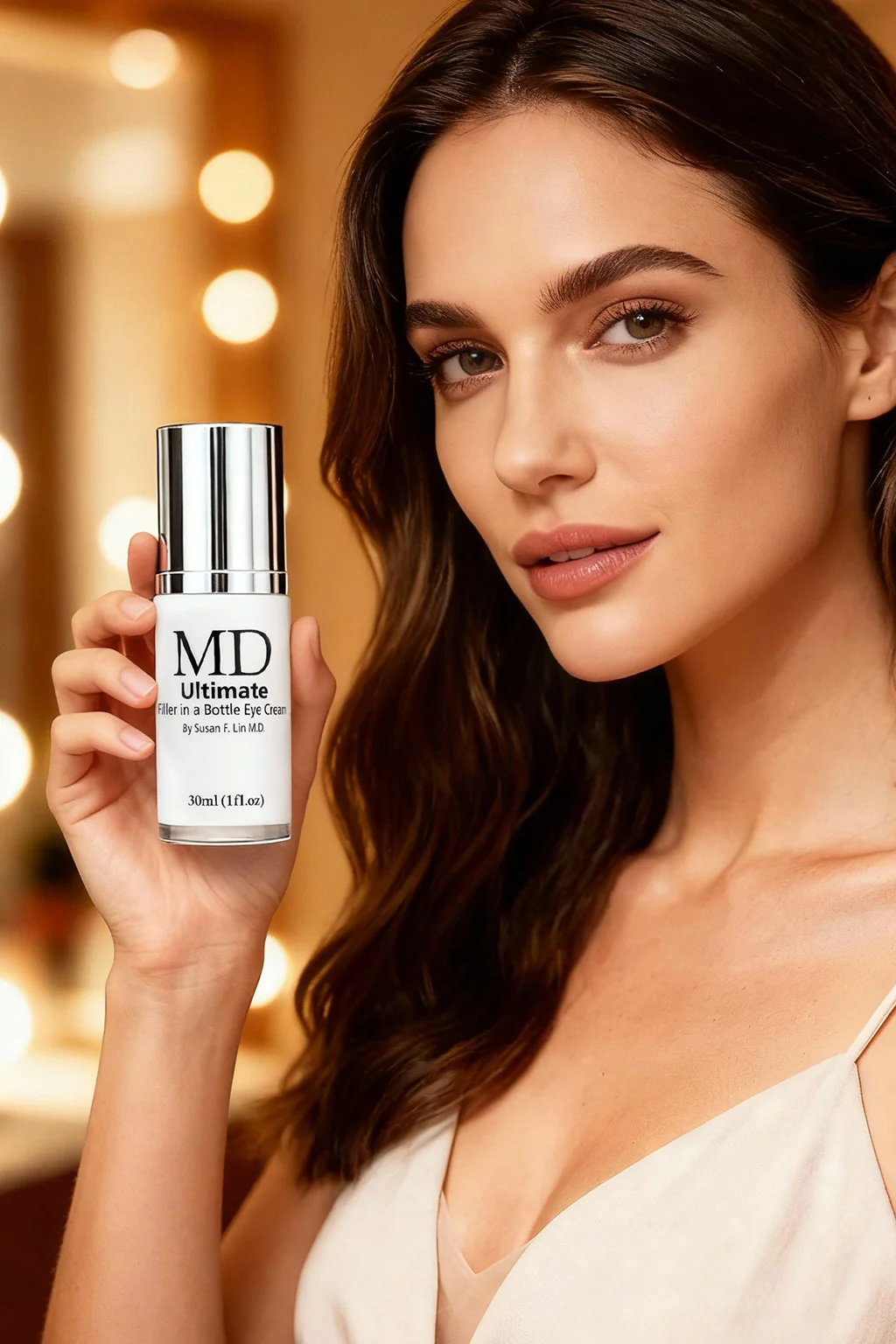 MD Ultimate Eye Cream is designed for sensitive skin around the eyes, blending peptides, stabilized Vitamin C, and 99% pure hyaluronic acid to provide instant hydration while delivering long-term rejuvenation. Whether you're dealing with puffiness, dark circles, fine lines, or age-related volume loss, this eye cream helps restore brightness, firmness, and fullness to the delicate eye contour. It's often referred to as "filler in a bottle" for its ability to address under-eye concerns without the need for needles.